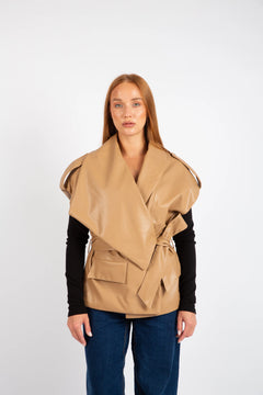 A contemporary update to the timeless trench coat. This cropped jacket features classic elements like the double-breasted closure and shoulder tabs, but with subtly voluminous sleeves. The short, boxy silhouette makes it an effortlessly stylish layering piece over high-waisted bottoms.
