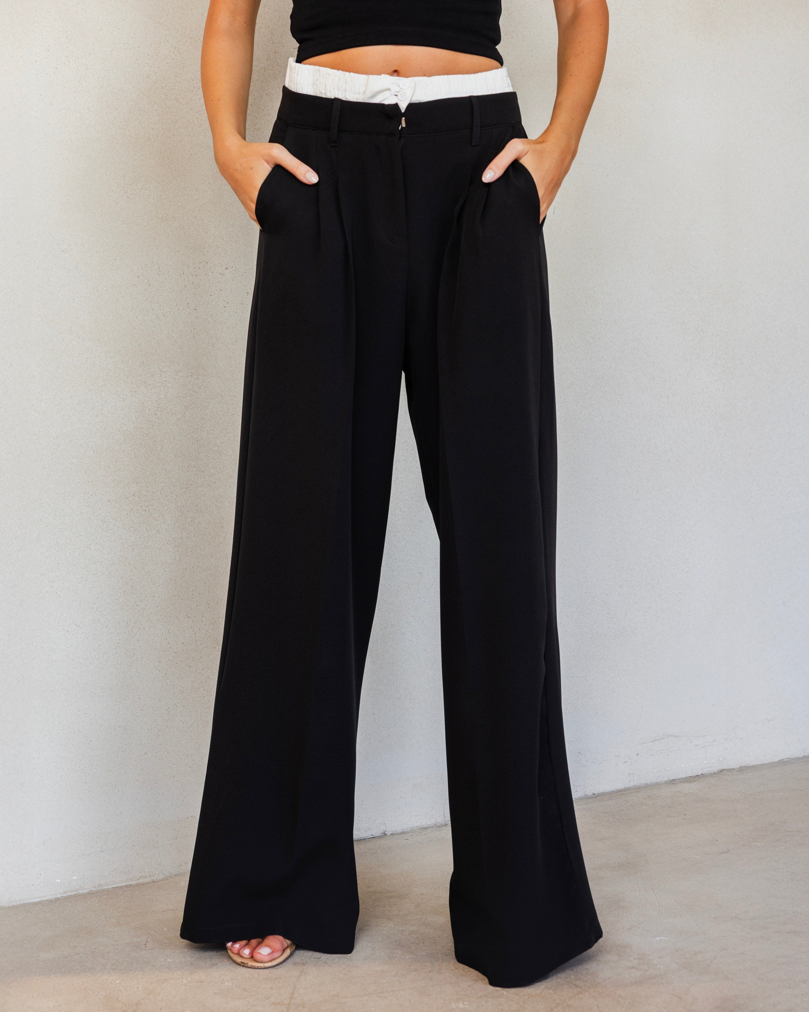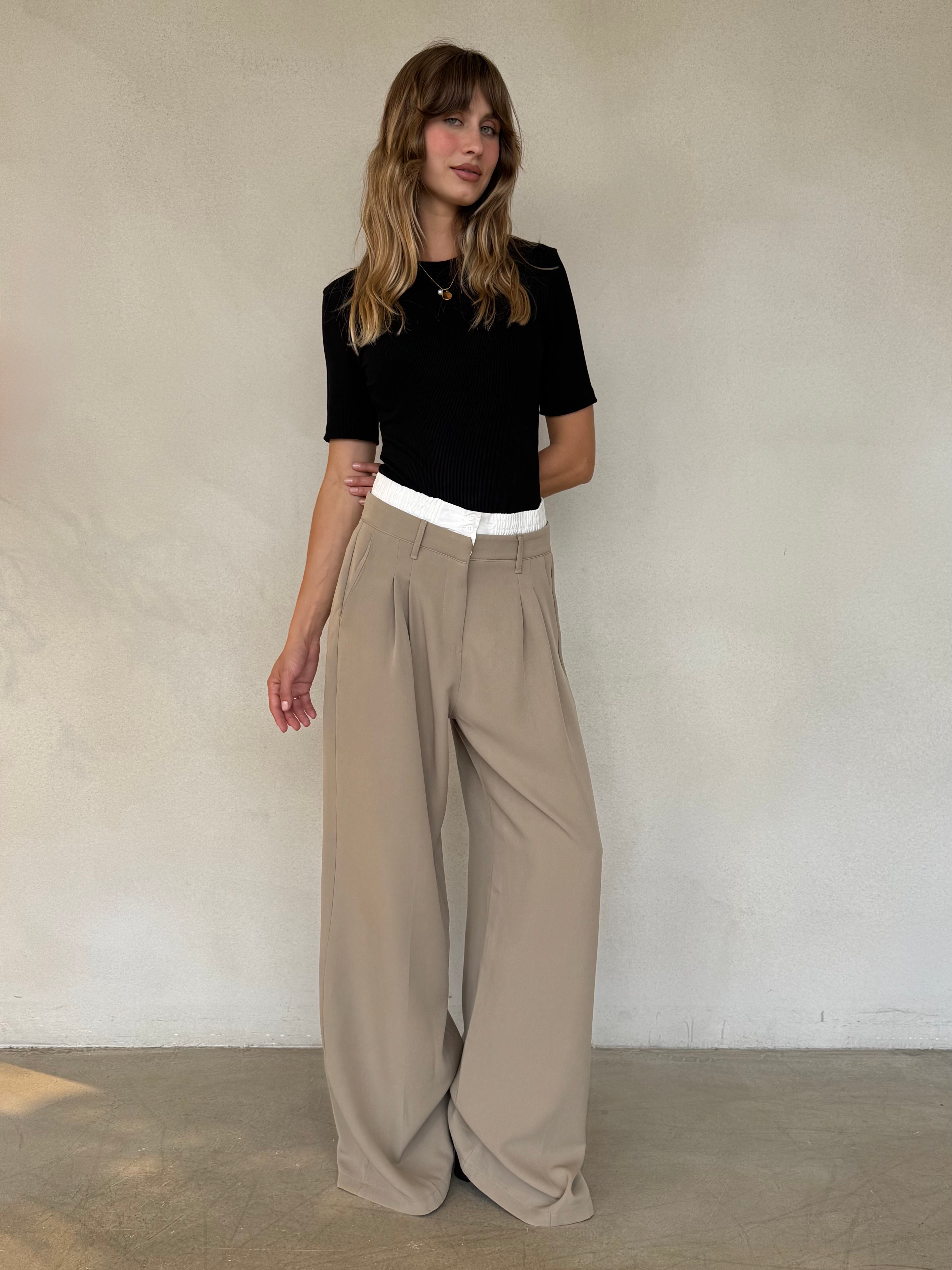 White formal fabric trousers with an elasticated waistband, offering both comfort and elegance. Easy to style with any top or shirt, combining practicality with a refined look.