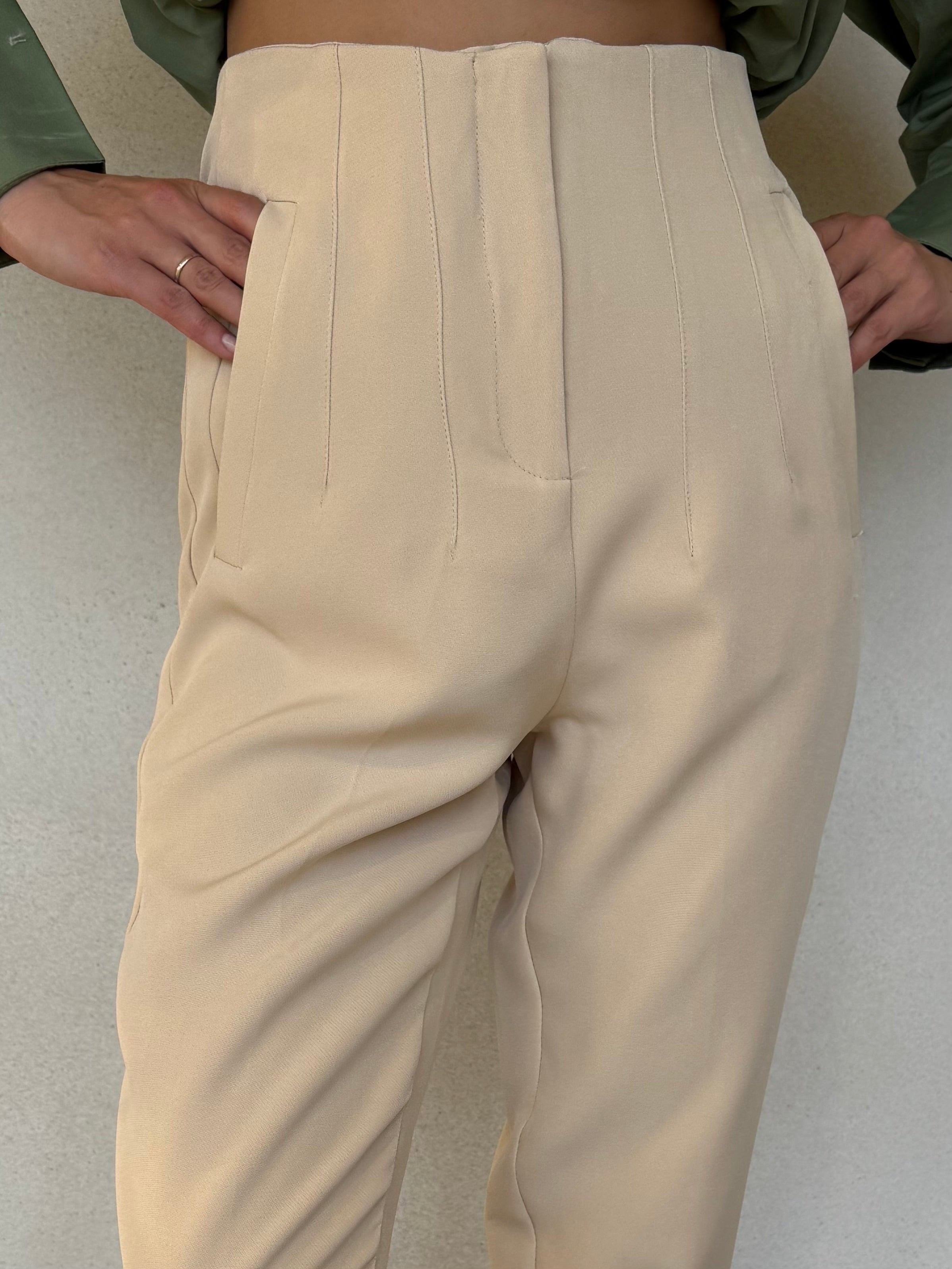 Tailored trousers with a high waist and front pleats.