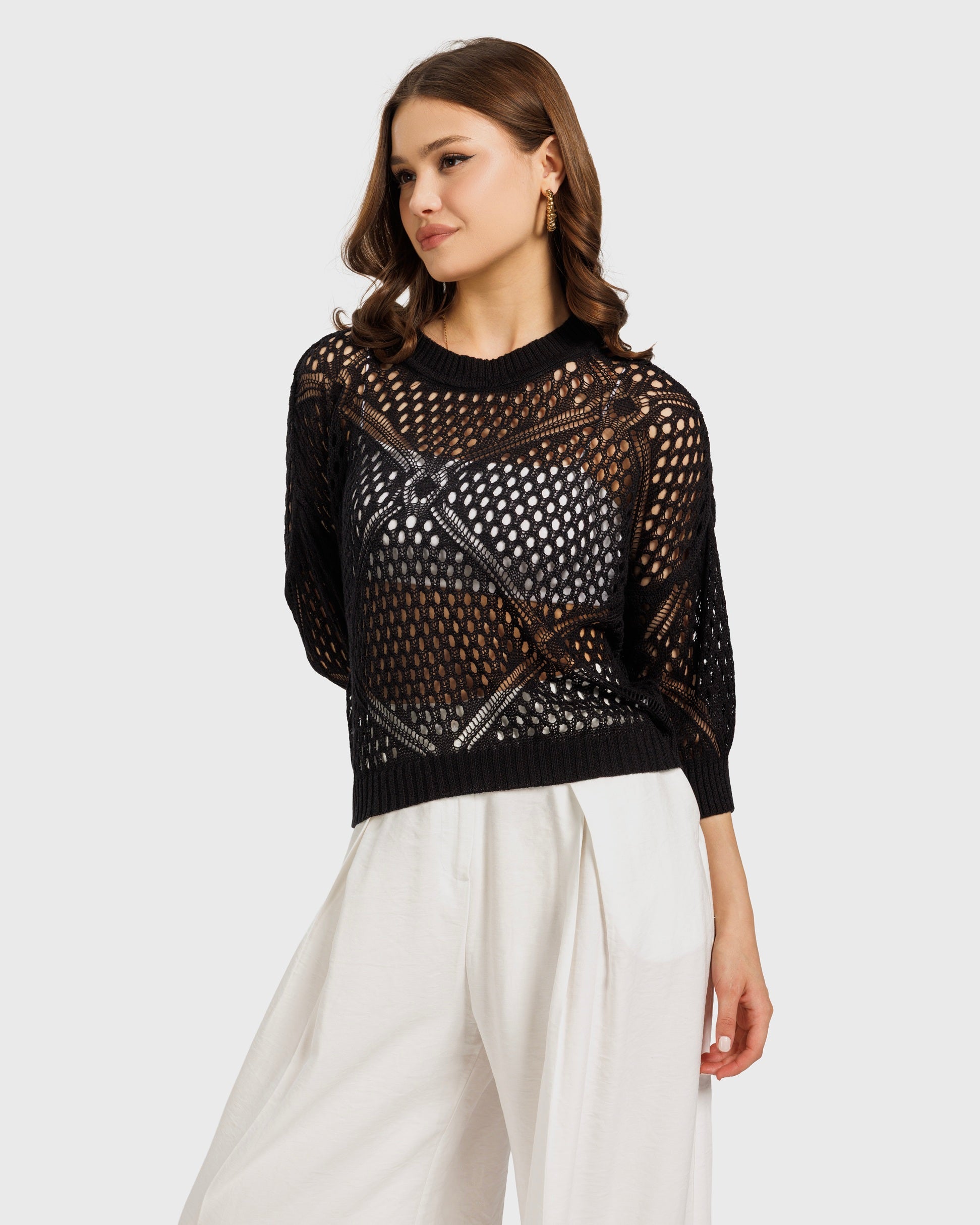 Long-sleeved knitted top made from soft and comfortable fabric. Classic and chic design, perfect for everyday wear or work, and easy to pair with pants or skirts.